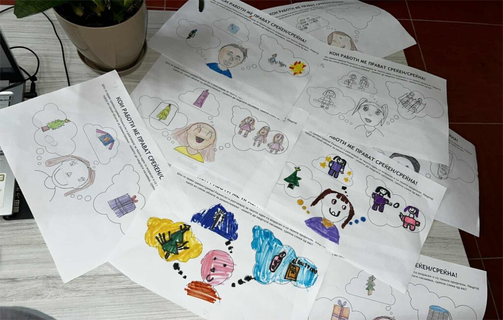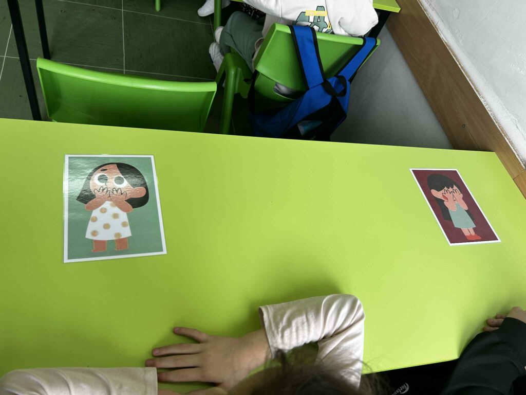 За време на работилниците учениците имаа можност да ги препознаат чувствата, да ги одглумат, да ги поврзат со различни животни ситуации, да ги класифицираат во пријатни и непријатни, како и низ дискусија да извлечат заклучоци во однос на постапките кога доживуваме непријатни емоции и одговорноста што ја имаме за истите. Исто така се фокусираа конкретно на чувството на среќа, што е она што кај нив ја поттикнува и одржува среќата, како си ја претставуваат под формата на слика, како ја опишуваат, со кого ја споделуваат.